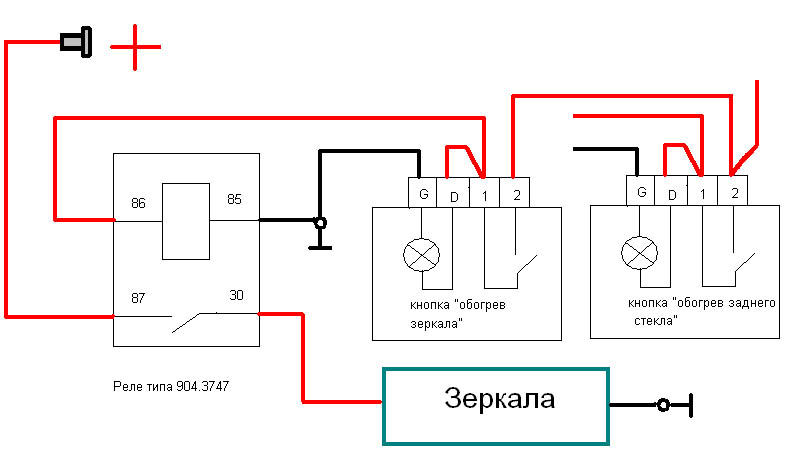 Согласен. Потребление, например, ERGONa 8-10 Вт, а это уже получается около 0.9 А на зеркало. При том появляется проблема пускового тока при дребезге контактов на кнопке. Релюшку надо ставить, это точно. А с обогревом стекла систему объндинять нет смысла.