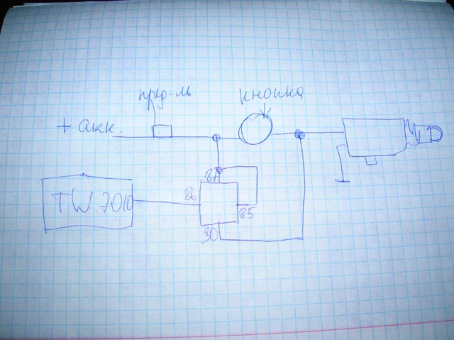 30 подсоединяешь к контакту кнопки, на котором + только при нажатии на кнопку.