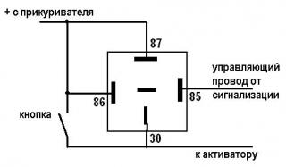 Спасибо! но я без сигналки подключаю smile.gif тупо с кнопки из салона, да и личинку пока не охота заваривать, просто чтоб ключи не тыкать! значит моя схема такая или другая