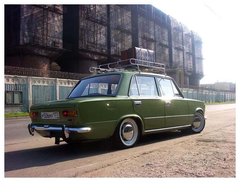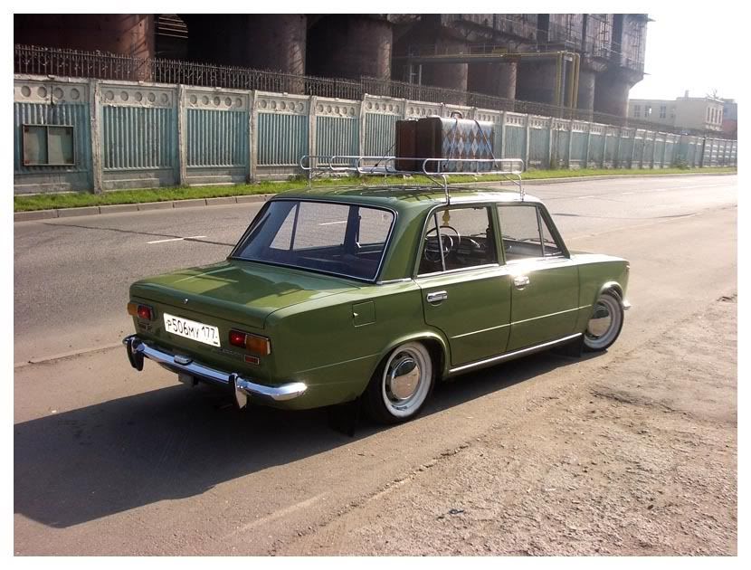 Колеса и шины - родные штапмовки, отчищены, покрашены в два цвета: центр в цвет кузова, обод в белый; комплект новых колпаков, комплект новых шин 175/70R13 ( скоро будут другие), комплект вайтволлов из США. В планах на 2008 год проба советского литья, с детализирующей покраской. Сзади стоят шпильки и проставки по 22 мм с каждой стороны.