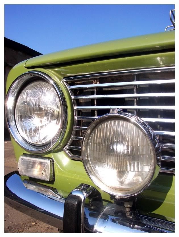 Аксессуары - противотуманка Лукас, английская, 50х годов, багажник на крышу, 70х, окрашен серебристым металликом под лаком с некоторой детализацией крепежа, в салоне: корзинка на тоннель, тоже английская, "противоугонные" замки на форточках, "хром" шарик на рычаге КПП.