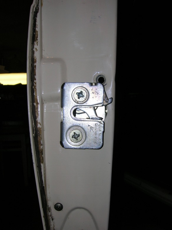 резинувую втулку, в которой была установлена тяга гвоздя (тот который торчит из обшивки снутри двери около стекла