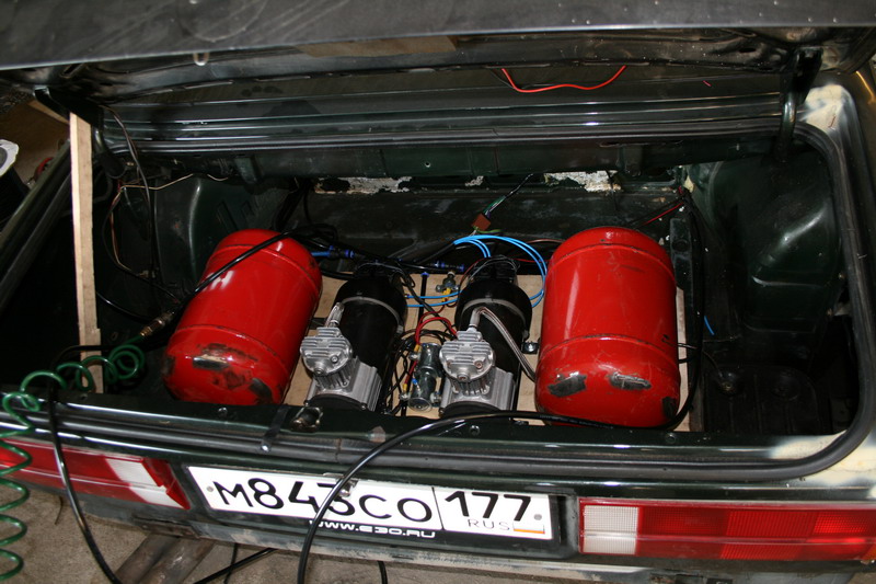 Данная машина была собрана как демонстрационная, поэтому там установлено больше оборудования. Вообще в принципе - если использовать безресиверную систему подготовки воздуха - то багажник остается свободен. Не всё так уж страшно!