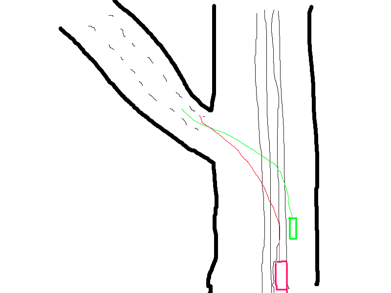 хорошо а как же на счет расположения на проезжей части. она должна была занять тот же крайний левый ряд, а она в среднем оказалась.