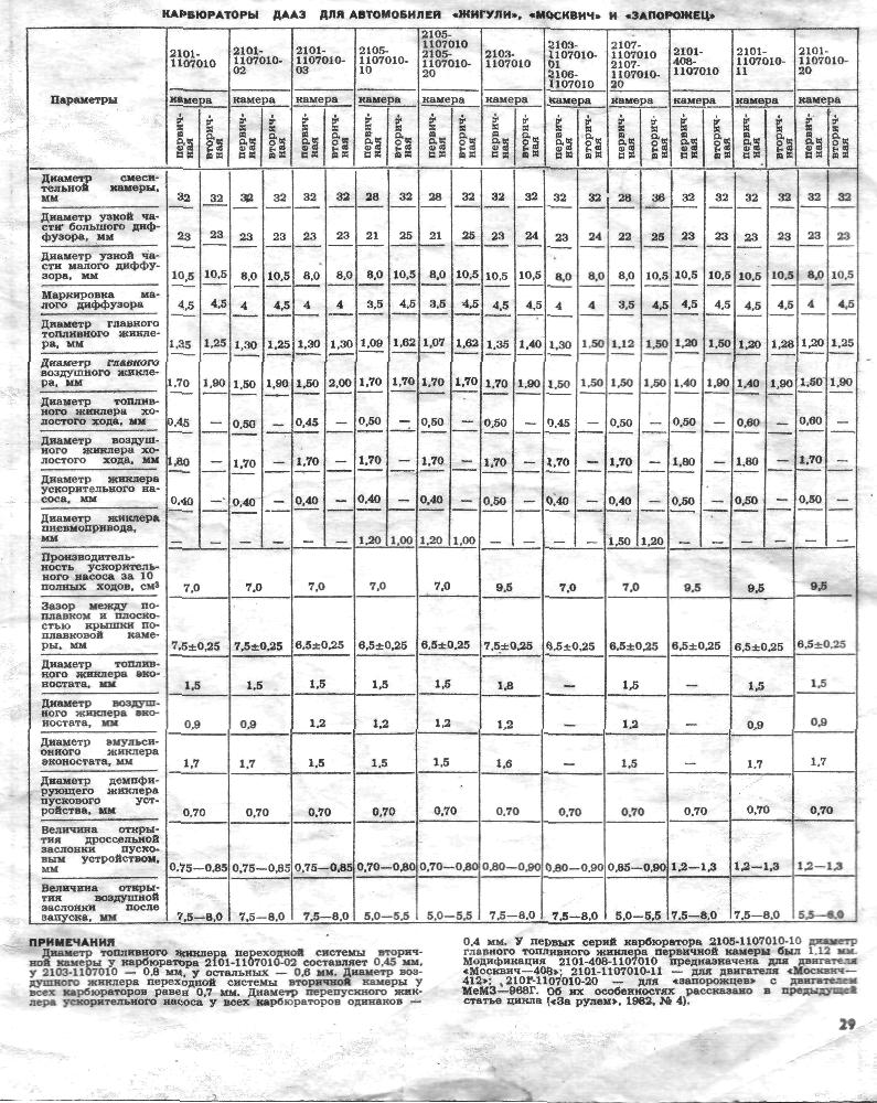 со зрением все в порядке, я тарировки приводил вот из этой книжки КарбВАЗ, по ней и настраивался.