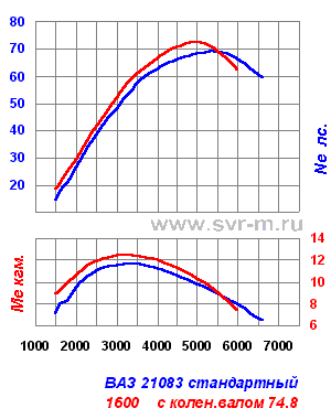 с увеличением объёма двигателя растёт момент и мощность а диапазон вала смещается в низ.