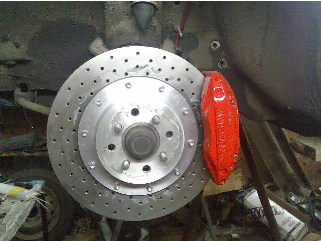 Ден, у Мишы наборные, вентилируемые, перфорированные диски от Порша на алюминиевой ступице, диаметром 345 мм)))
