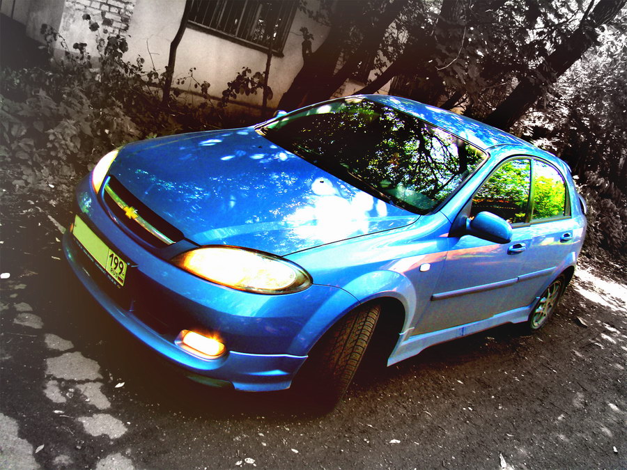 чет даже на мою и не похожа...она цветом снежки и пластиковых арок нет...сток..тонирован.капот черный с воздухозабоником..и реснички