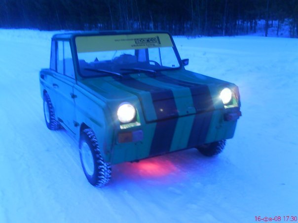 Машина пригодна для езды как по шоссе, так и по бездорожью: дорожный просвет регулируется за счет свинцовых грузов. Убираете грузы - просвет увеличивается, хотите мчаться низко и быстро - кладете грузы и мчитесь, бороздя бескрайние просторы российских дорог низко посаженным бампером!