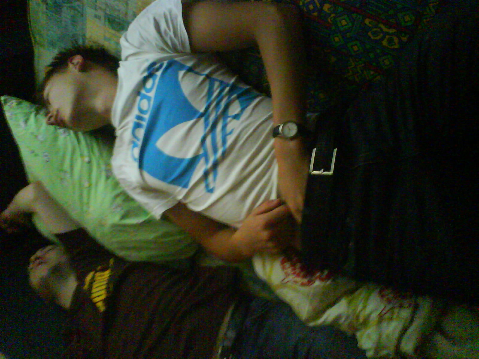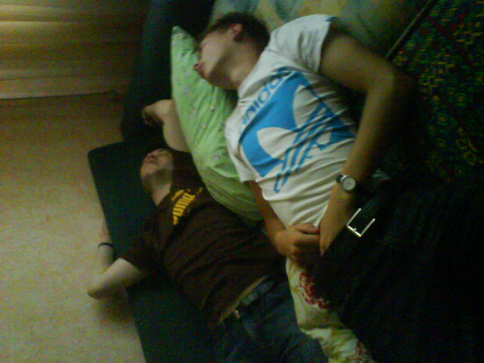 В белой абибасовской футболке Салфетков Антоха что-ли и че это он в штаны во сне полез?
