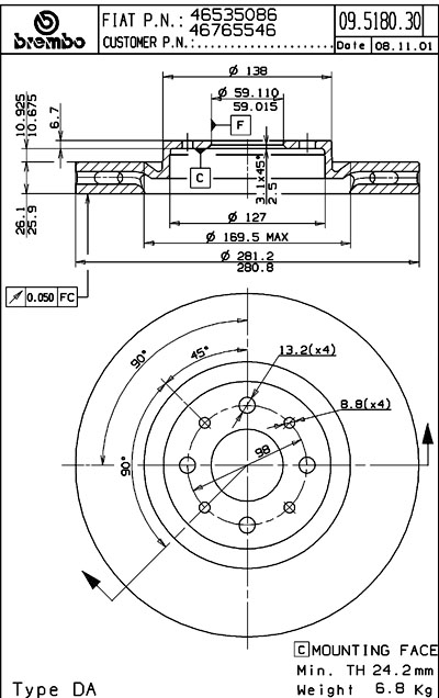 Смотри, какая засада может быть: высота диска весьма мала и его установка потребует выноса суппортов. Вынести- не проблема, но сколько у тебя есть расстояния в запасе до того момента, как суппорт начнет задевать за колесный диск изнутри?