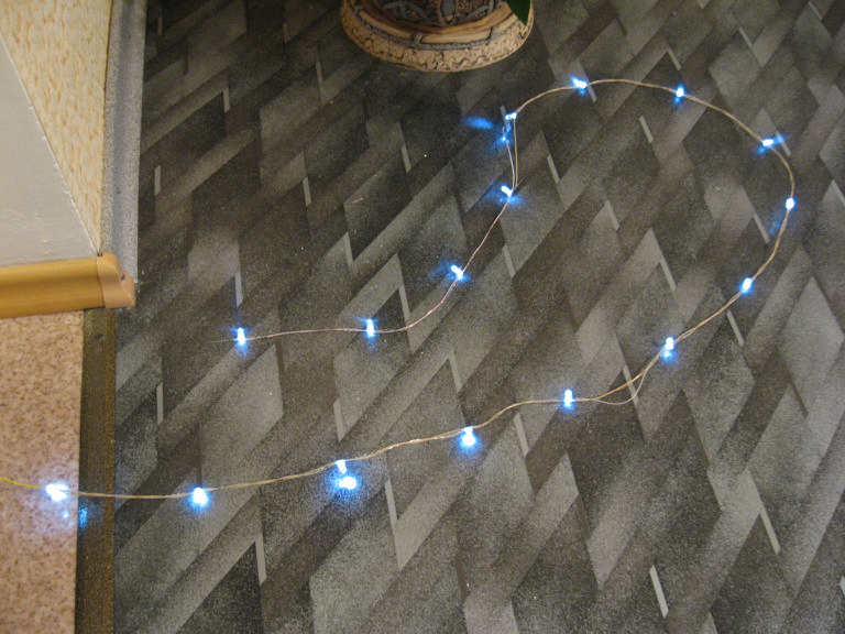 Фото 10. Отрезаем ребра и вставляем нашу герлянду в эти дырочки! Фиксируем в нескольких местах скотчем или изолентой.