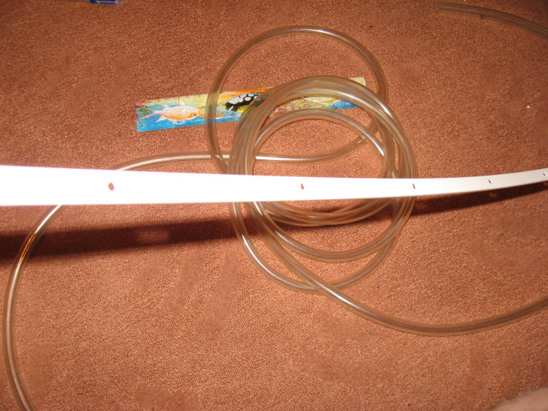 Фото 3, 4. За основу взят прозрачный шланг и кабель-канал. Шланг купил на авторынке, но не знаю, может есть и в садовых магазинах. Цена 20 р. метр. Кабель-канал это пластиковый прямоугольник для укладки проводов. Стоит порядка 16 рублей и продается в хозяйственных магазинах.