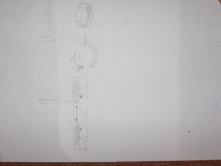 Так как процес монтажа не имел возможности запротоколировать, поэтому нарисовал эскиз идеи (Фото 21). Прикручиваем обычных хомут как на рисунке, вставляем трубку и затягиваем хомуты.