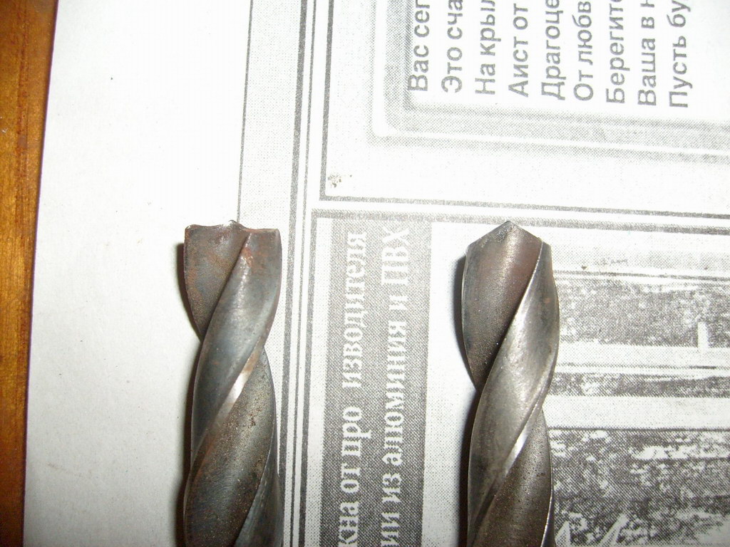Для наглядности справа обычное сверло, а слева уже заточенное для высверливания точек.