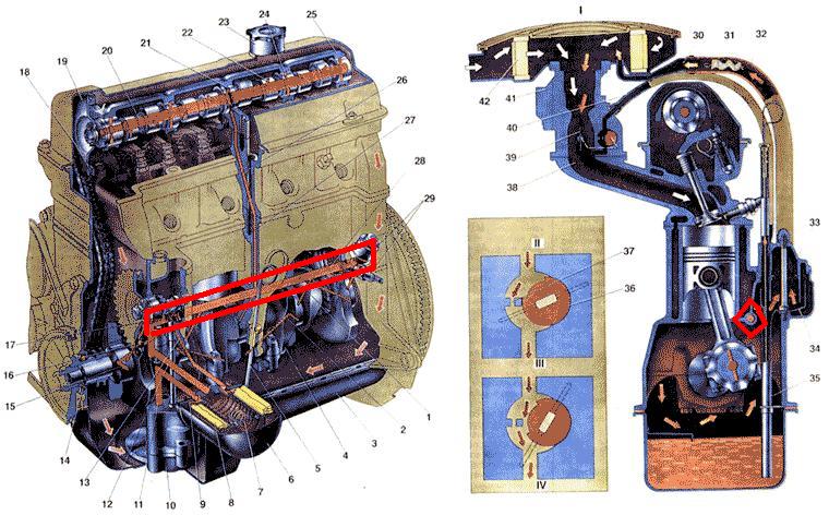 врезанные в корпуса коренных подшипников коленвала на матрехе они стоят строго вверх и представляют простые форсунки; когда на классике они стоят в самой нижней масляной магистрали блока врезанные вверх-ногами и охлаждающие юбку поршня через носики...