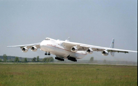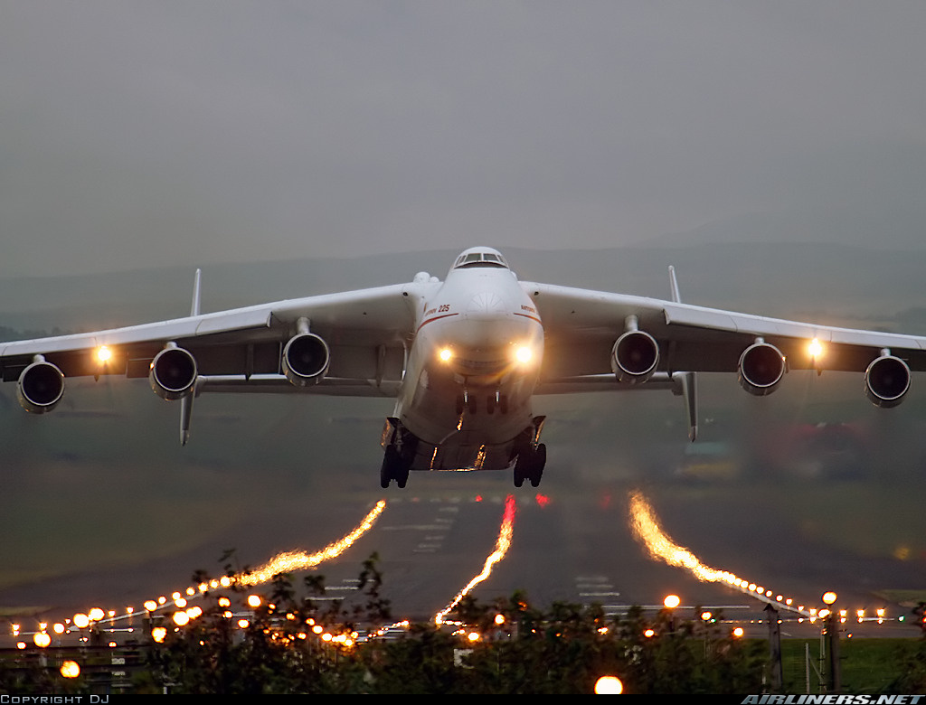 еще интересное: однажды АН-225(так и называется данный самолет и существует в единственном экземпляре) перевозил внутри себя....БОИНГ 737! (естественно тока без крыльев). Вот такая вместительна я штучка!